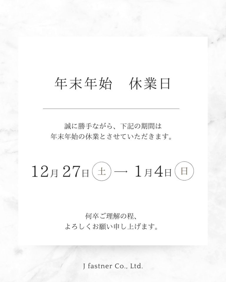 年末年始の休業期間について、以下のとおりお知らせいたします。